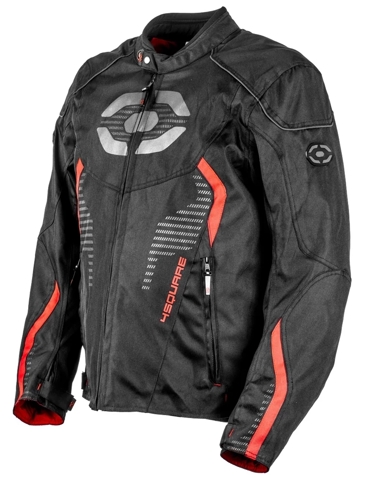 Rövid dzseki fazonú motoros textíl kabát a francia 4SQUARE márkától, 600D poliészterből, klímamembránnal és kivehető thermobéléssel mindennapi használatra.