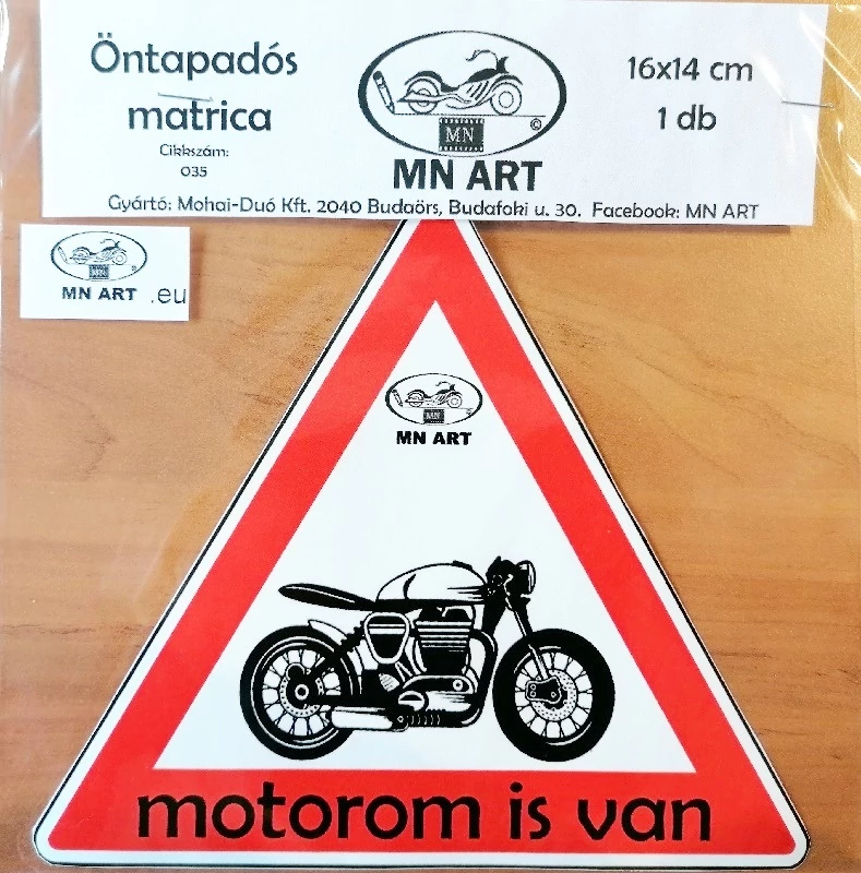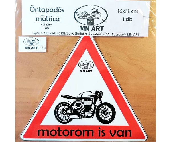 Motorom is van, háromszög matrica, öntapadós