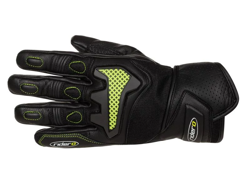 A Ridero Yellow motoros bőrkesztyű. Minden évszakban használható, akár motorkerékpáron vagy robogón. Hosszított száru kesztyű, amely jól védi a csuklót.