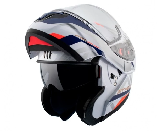 könnyedén felnyitható állrész a többfunkciós használatért (flip-up) bukósisak, nyitott állás esetén is biztonsági rögzítővel (P/J).