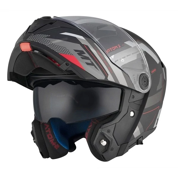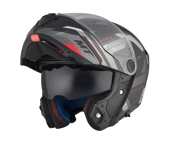 könnyedén felnyitható állrész a többfunkciós használatért (flip-up) bukósisak, nyitott állás esetén is biztonsági rögzítővel (P/J).