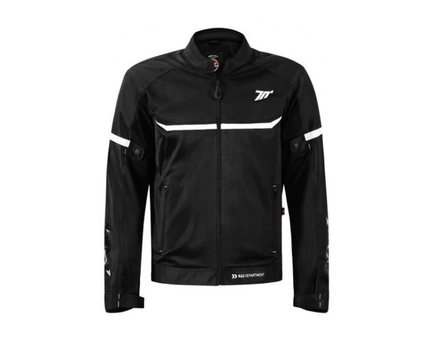 SD-JR30.1, Rövid szabású, könnyű textil sportos férfi kabát, 100%-ban szellőztetett lélegző hálós kivitelben, nagy légáteresztő képességgel. Magas minőségű, nagy szakítószilárdságú 600D kültéri anyagból. Két darab első, félig rejtett zsebbel. Elől-hátul szellőztethető nyílásokkal. Állítható derék és rugalmas derékpánt, a tökéletes illeszkedésért, csukló és karpántok vannak felvarrva a kabátra (patentos). Fényvisszaverő panelekkel van díszítve a jobb láthatóság miatt. Tartalmazza a belülről állítható váll, könyök protektorokat, a biztonság növelése érdekében. S-4XL méretig, fekete/fehér/piros/kék, fekete/neonsárga és fekete színben rendelhető. Rendelkezik CE minősítéssel és motoros ruházati homologizációval. Tavaszi - nyári viseletre egyaránt használható.
